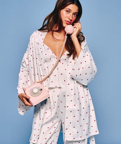 Kimono de satén con estampado de corazones y bordado "love me