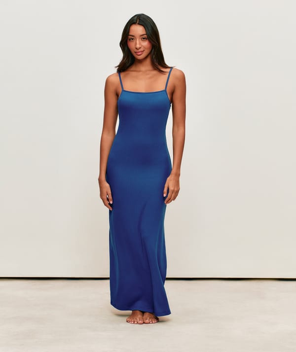 Vestido largo ajustado de canalé con espalda descubierta y copas integradas